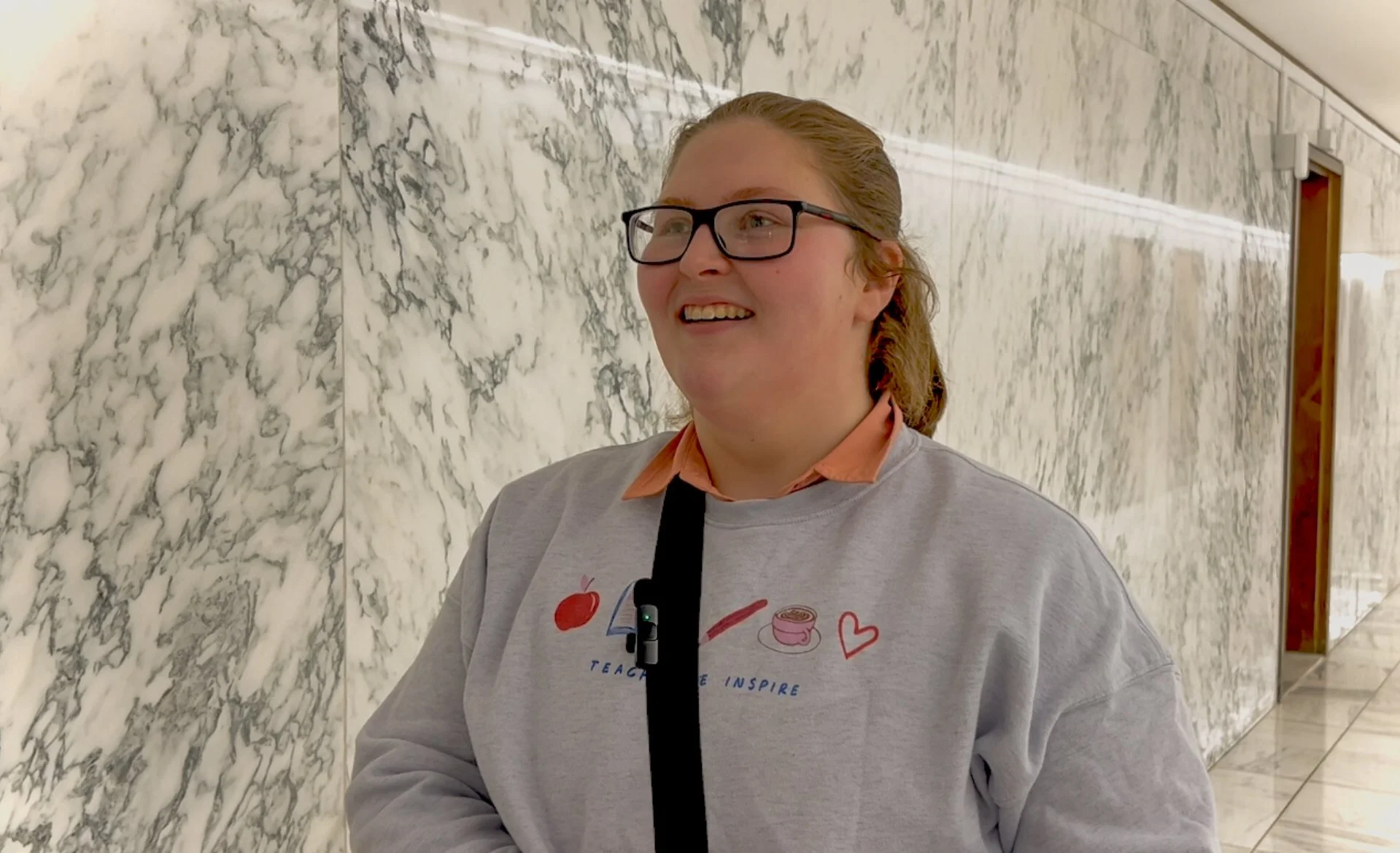 Jessica Magguilli speaks about agriculture advocacy in the New York Legislative Building (Photo by Jake Zajkowski)