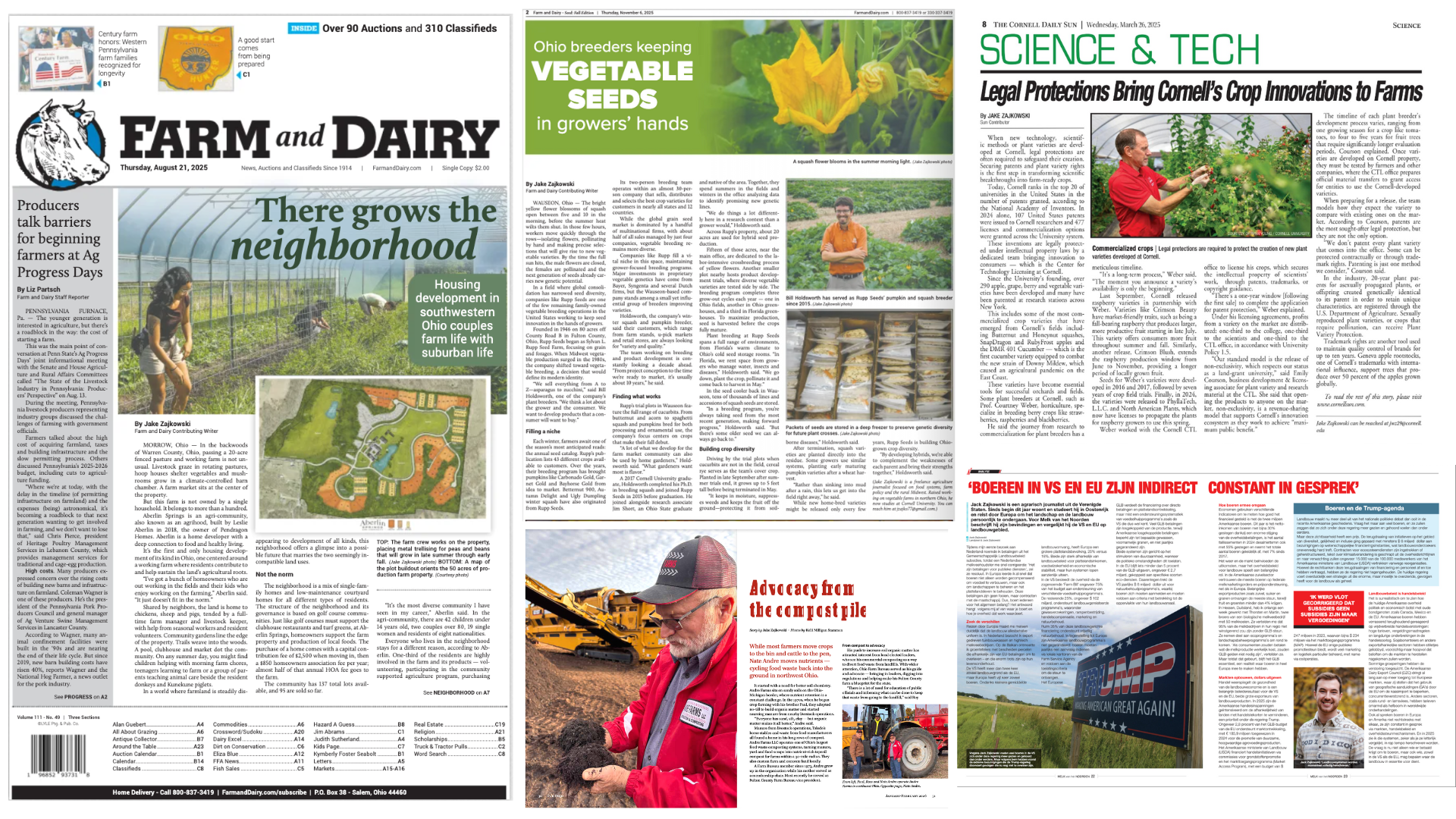 Contributing writer for AgDaily, Farm & Dairy, Ohio Country Journal, Offrange, Cornell Daily Sun, Cornell Chronicle, Toledo Blade, Springfield Hub, Melk de Langs and Agri-Pulse Communications.